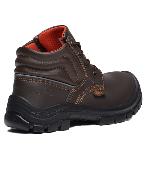 - Suela: bi densidad elaborada en PU, inyectada directamente al corte, monocolor (negra) o bicolor (negro y gris o negra y marrón), antideslizante, impermeable, flexible, liviana, aislante térmica, con excelente resistencia a los hidrocarburos y excelentes propiedades dieléctricas. dureza parte externa piso (compacto) 45-55 shore a y parte interna (expansor) 36-45 shore a.