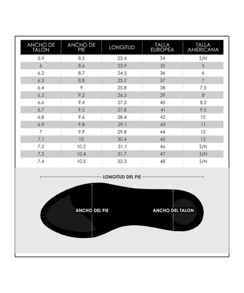 Totalmente elaborado en micropiel negro con recubrimiento en pu calibre 1.8 mm, cuello y lengüeta en sintético.