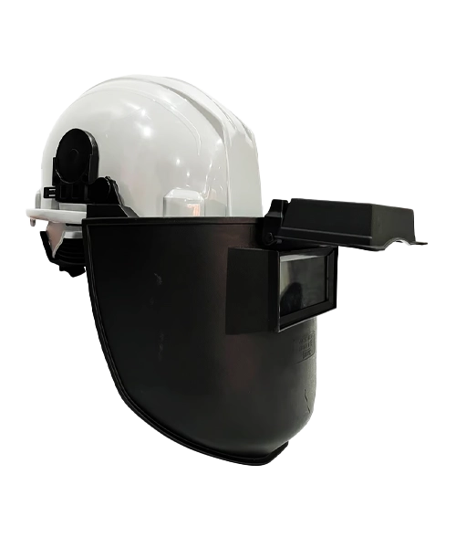 Careta para soldador; fabricada en polipropileno: resistente al impacto y esquirlas incandescentes; adaptable a Slot de cascos tipo capitán; adaptador compatible con auditivo CM-501; soporte en vidrio de levante; vidrio Grado 11; sistema de ajuste horizontal; permite el uso conjunto con protección auditiva y cabeza; Certificado EN 175:1997