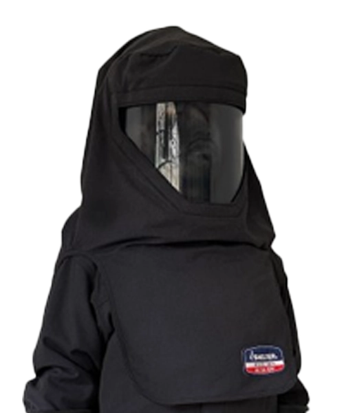 El traje de protección incluye un capucho (hood) compuesto por tejidos inherentemente ignífugos y un visor Arc Flash light gray ultra delgado que garantiza una mayor calidad óptica y protección al usuario. El kit de protección también incluye una chaqueta corta, un overol con peto, un bolso de transporte y gafas de seguridad.